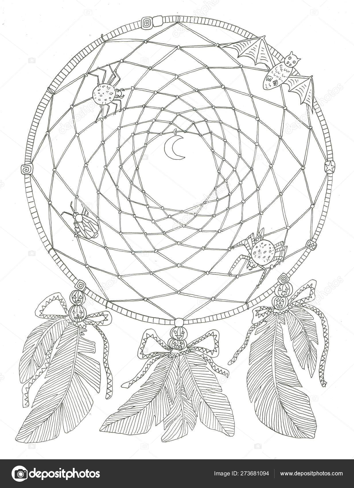 Dream Catcher Coloring Page Free Hand Drawn Ink Illustration Stock Photo Image By C Marynas 273681134